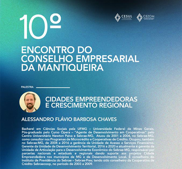No dia 03 de agosto, o Conselho Empresarial do Sul de Minas (CESUL) Regional Mantiqueira e o Conselho Empresarial da Zona da Mata (CEZOM), irão realizar o 10º encontro do Conselho Empresarial da Mantiqueira, em formato híbrido.